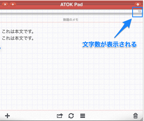 ブログ記事やSNSの投稿では文字数を意識する場面が多く、ATOK Padは右上にリアルタイムで文字数を表示してくれます。