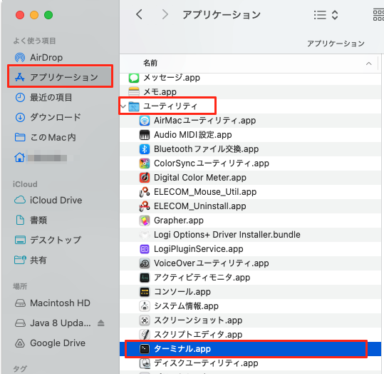 Finderアプリを開き、アプリケーション>ユーティリティにあるアクティビティモニタを起動します。