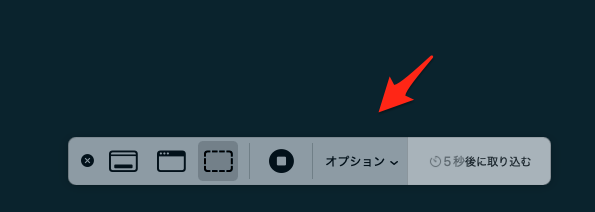 さらに、「Shift + Command + 5」で表示されるメニューの「オプション」から保存先を「クリップボード」に設定すれば、全画面や範囲指定の撮影でも自動的にクリップボードへコピーされます。